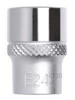 Handbediend met antisliplaagkarteling in de lengterichting. Ingangszijde mat verchroomd, uitgangszijde gepolijst. Binnenaandrijfvierkant volgens DIN 3120 - C 12,5, ISO 1174, met kogelvangsleuf. Chroom-Vanadium-staal.