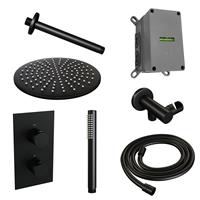 Complete inbouw regendouche van Brauer met 3-weg thermostaat, handdouche en regendouche van 30 cm. De regendouche zorgt voor een heerlijke en comfortabele douche ervaring. De inbouwthermostaat is eenvoudig te bedienen. Met de onderste knop stel je de gewenste watertemperatuur in en met de bovenste knop bepaal je de gewenste douchestand en switch je tussen hoofd- en handdouche. Deze set bevat Kraan met inbouwbox (3-weg) Plafondarm Douchekop 30cm Staaf handdouche Doucheslang Wandaansluitbocht Specificaties Merk: Brauer Serie: Black edition Kleur: Mat Zwart (electroplating) Materiaal: Messing Type kraan: Inbouw thermostaatkraan, ¾ aansluiting Type binnenwerk: Keramisch Type douchearm: Plafondarm 200 mm, ½ aansluiting Met omstelinrichting: Ja, 3-weg (L/R/B) Met hoofddouche: Ja, Ø 300 mm, ½ aansluiting Met handdoucheset: Ja, messing staafhanddouche met wandaansluitbocht, ½ aansluiting Met doucheslang: Ja, 1500 mm Met afbouwdelen: Ja Met inbouwbox: Ja Met terugslagklep: Ja, aan voorzijde Voorgemonteerde kraan: Ja Afmeting knoppen: Ø 40 mm Afmeting afdekplaat: 200x110 mm Inbouwdiepte inbouwbox: 62-75 mm Veiligheid: Thermostaatknop met kinderbeveiliging 38° Garantie: 5 jaar